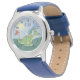 This cute blue modern kids watch features an adorable green dragon in the sun, and has space for you to add your boys name. With clear, easily readable numbers, this 'first' watch is great for kids or toddlers just starting out on learning the time. The perfect dragon-themed design for your little one!
