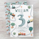 This cute and modern transport-themed kids birthday invitation design features a blue train travel illustration, with trains, tracks, and greenery in a white background. The invite can be personalised with your boys name and other details necessary for your party. The perfect travel-themed addition to your toddler or child’s birthday party. This invitation is set for a 3rd birthday, but this is easy to edit under 'personalise this template' for a different age!