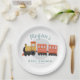 This cute, whimsical, and modern baby shower paper plate design features a colourful train travel cartoon, and can be personalised with the parents'/mum’s name(s) and date of your party. The perfect transport themed addition to your couple's boys baby shower.