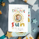 This cute and whimsical boys 1st birthday invitation design features a sun, with the text ‘first trip around the sun’, and can be personalised with all the information you need for your child's first party in cute, and two photos. The invite also features a matching sun, photo, and blue sky on the back. The perfect bright invitations for your little one's first birthday!