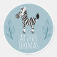Boys Cute Safari Zebra Name Kids Bookplate Classic Round Sticker