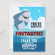 Send a FINTASTIC personalised Thank You to your guests with this adorable 5X7 flat note card featuring a blue ocean background, summer skies, and a happy shark cartoon. The bright, bold lettering will ensure every recipient feels thanked for sharing in your child's special event. Perfect for all sea-loving friends.