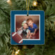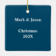 Football, boys photo Christmas ornament. Double-sided tree ornament with square photo template on one side and custom text on the other. Include name or names with year date for a fun keepsake or grandparent gift. Clean and simple design is easy to personalize for twins, brothers, or any boy.