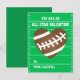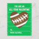 A fun sports theme design with a football heart against a green field background. The text reads "You are an All Star Valentine". Personalise these classroom exchange cards with a name. The back also has space for a message or to upload a photo. http://www.zazzle.com/valentine_football_party_get_together_4_5x6_25_paper_invitation_card-256426721042476539