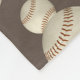 This sporty baseball / softball themed fleece blanket for boys or girls features a randomly arranged pattern of dirty baseballs / softballs in varying sizes turned every which way on a customisable brown background - personalise with player name and monogram or varsity letter - by katz_d_zynes