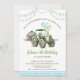 Boys Green Blue Balloons Tractor Birthday Invitation