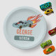 This modern and cool boys 7th birthday paper plate design features a car with wheels and hot flames. The plate can be personalised with a name and age. Set as a seventh birthday design, but easy to edit. The perfect addition to your hot car party!