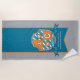 Colton crest C name and meaning kids beach towel. Ideal for a personalised gift for a boy who has a name beginning with C. This example reads Colton From the coal town Successful, plucky and heroic or you can customise the text with your own name beginning with C and own words if required. Ideal as a special boys birthday or celebration gift. If you need help with your own personalised name please contact me. Graphic knights shield on a blue teal flag with orange trim with a lion's head, crown, star and the letter C in orange, grey, teal blue and white knight colours. Uniquely designed by Sarah Trett for www.mylittleeden.com on zazzle.