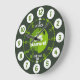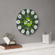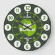Boys graphic learn to tell the time green wall clock colour coded to help assist your child to read a clock face. This teaching aid includes minutes and hours and past detail and to make child's play of telling the time. Clock colour coded in shades of green and featuring a little white tractor and space for your own name. Currently reads Samuel. Would make a great personalised Christmas or Birthday gift. Original design by Sarah Trett for www.mylittleeden.com