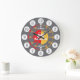 Colorful boys graphic wall clock color coded to help assist your child to read a clock. This colorful teaching aid includes minutes and hours and past and to making child's play of telling the time. Clock color coded in grey red, yellow and white featuring a little white tractor and your name. Clock can be customized with your name of choice. Currently reads Samuel. Would make a great personalized Christmas or Birthday gift. ">www.sarahtrett.
