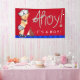 Nautical baby shower banner with adorable light hair blonde little sailor boy on a red and blue background. You can add text and change the background colour on this cute nautical baby shower banner.