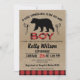Looking for a lumberjack theme baby shower invitation? This design features a cute bear silhouette, two axe and a black and red plaid pattern. I've also added the word boy in a plaid pattern on a background that is a scanned Kraft paper. Same design thank you card is also available at the store. For more lumberjack theme baby shower invitation designs please visit the store. This lumberjack baby shower invitation is ready to be personalised.