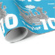 Birthday wrapping paper in blue and grey. Personalise this boys birthday paper with your name and age. Currently reads Happy birthday Taylor 10. Great for wrapping a special tenth birthday present. Uniquely designed by Sarah Trett.