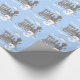 Birthday wrapping paper in blue and grey. Personalise this boys birthday paper with your name and age. Currently reads Choo Choo Taylor 3 today. Uniquely designed by Sarah Trett.