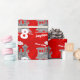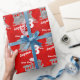 Birthday wrapping paper in red and grey. Personalise this boys birthday paper with your name and age. Currently reads Choo Choo Jayden 8 today. Uniquely designed by Sarah Trett.