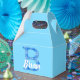 Blue plaid pattern print. Decorative favour boxes. Edit name to customise. Party decor idea.