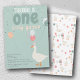 A cute one silly goose themed boy's Birthday Party theme. This unique, hand drawn design is perfect a baby boy's first birthday party! Customise this one silly goose birthday party invitation and make it your own! Find matching one silly goose themed kids birthday decor and favours in this design's collection.