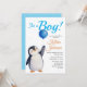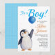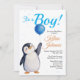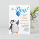 Boy's Penguin Blue Baloon Watercolor Baby Shower Invitation
