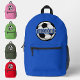 Boys Personalised Name Cool Blue Soccer Football Printed Backpack