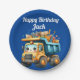 This personalised name Happy Birthday paper plate has a Dump Truck on it for your little guy