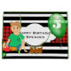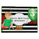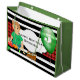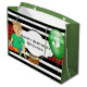 A cool gift bag with bold and modern black & white stripes, a cool green & black gingham pattern, boys playing and customisation on both sides.