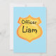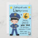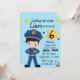 Calling all units for a fun and adorable Police Office themed birthday celebration! Features a light blue background with a little boy dressed in a police uniform.