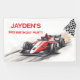 Kick off the celebration in high-speed style with this Boys Red Racing Car Birthday Party Banner! Featuring a bold red race car with checkered flag accents, this banner is perfect for race car themed birthdays, pit-stop party entrances, photo backdrops, and dessert tables. Personalise with your child’s name and age to make the birthday boy feel like the fastest driver on the track! A must-have decoration for little racing fans.
