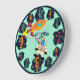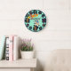 Add a name and title to this space travel themed wall clock for boys or girls. It features fun numbers with aliens, rockets, astronaut and planets.