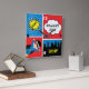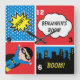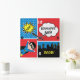 This boy's superhero personalised wall clock features a cute superhero and a cityscape as well as some cartoon elements. The design is divided into four sections making it look a little like a comic book. The colour is bright and I've included some cartoon elements. It's ready to be personalised and is suitable for a boy's superhero theme bedroom.