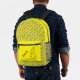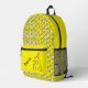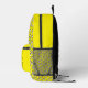 Train engines on an adorable yellow knapsack for backpack to school.