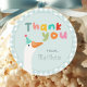 This cute and whimsical boys 2nd birthday Favour sticker design features a silly goose with a blue party hat, a blue gingham border, fun typography for “thank you”, and can be personalised with your boys name. The perfect farm design for your little one's second birthday!