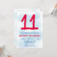 11th birthday kids boy blue party 11th birthday party invitation for a 11 year old boy with fun fonts writing and fun watercolor number.