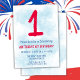 1st birthday kids boy blue party 1st birthday party invitation for a 1 year old boy with fun fonts writing and fun watercolor number.