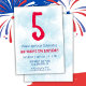 5th birthday kids boy blue party 5th birthday party invitation for a 5 year old boy with fun fonts writing and fun watercolor number.