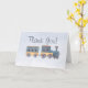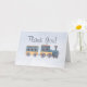 Boy's Wooden Toys Blue Thank You Card with vintage wooden trains created with watercolor paints. Trains are in the vintage wooden style. This card is part of a collection for a boy's baby shower. Collection includes an all in one invitation and all the party supplies you will need! You can find the whole collection in my shop: Celebrate Everything.