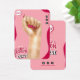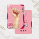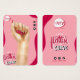 The card features a hand-drawn illustration of a hand to sense the bracelet look being put on a wrist, along with a pink background and the lettering "Let's flatten the curve." "Our bracelet display cards are the perfect way to show off your jewellery and attract new customers if you own a jewellery business." Order now!