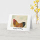 A chicken on the front of this birthday card. It says Happy Birthday, but the inside is blank. Use Zazzle text and fonts to have a message printed inside the card, or leave it blank and handwrite the message yourself.