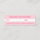 A professional mini appointment card for a braiding business. Featuring the word "braids" in a groovy retro style. The front of the card features your name and contact details. The back of the card has space for you to write a date and time for a customer's next appointment, along with a reminder of your cancellation policy. The text templates can be easily personalised.