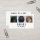 A modern business card for hair braiders, Afro hair stylists and locticians. You can upload three photos to showcase the quality of your braiding work. The front of the card features the word “Braids” and by plus your name. The back of the card has further information, contact details and information about your braiding services. The text templates are easy to customise. A professional business card design on a white background.