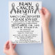 This beautiful brain cancer benefit flyer is perfect for advertising a cancer benefit and auction once you personalise with all your own benefit details in the provided boxes. See our store for coordinating cancer benefit posters and other specific types of cancer benefit flyers. The back of this brain cancer benefit flyer has intentionally been left blank in case you would like to add your own additional details, photos or information.