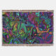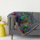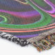 A quality printed throw has its advantages. This is a much finer weave throw than its loopier cousins, and though lighter, it is worth the investment for custom room accessorizing. The back is much prettier than the typical brown, and the fringe on the long sides very vivid, the selvage nicely done. Before photographing, I washed the throw in cold water, delicate, with a thicker woven throw the same size. On tumble dry low, this throw was dry in half the time as the other. This is a very practical quality if you use throws for furniture covers or to wrap up in frequently. The sleekness of the fabric makes it a great layer for accenting or protecting without the feeling of sitting on too much stuff. Perfect for napping or when you feel a light chill coming on. The color printing is beautiful and on this fabric, matched the design and color of my Photoshop image. This is an advantage for blending room fabrics and colors. The fringe on the short sides prints the colors from the design image and therefore varies from the side fringe. I streaked a white fractal line through the plaid pattern to give the illusion of weaving. This printed as crisp as an illusory thread, and put some white in the short side fringe, showing another advantage of print vs loomed- for artistic purposes, line lines, detail, and color integrity can be planned and preserved. My loomed throws have color limitations and more of a needlepoint texture. Print throws reproduce an exact image. The throw felt a little stiff straight out of the package, but this went away in the first delicate wash. Of course I searched the wash water for ink or bleeding and there was none.