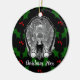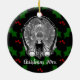 A head MRI is superimposed over holly leaves to make a fun holiday ornament.