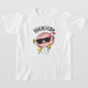 The t-shirt feels and looks great quality, a good thick cotton. It will be a little big for my son, but that means he will be able to wear it and not out grow it too soon. The print was as described on the order when personalised. True size, shape and colour T-shirt- thanks.