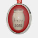 Old fashioned cookie jar with the word "brains" painted in drippy red paint. Just imagine your zombie child hanging this ornament on the Christmas tree. Precious, right?