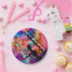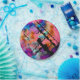 A brightly-coloured (orange, blue, pink,yellow, black), highly abstract fractal image.