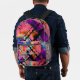 A brightly-coloured (orange, blue, pink,yellow, black), highly abstract fractal image. Add your own text.