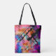 A brightly-coloured (orange, blue, pink,yellow, black), highly abstract fractal image. Customise by adding your own text.