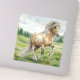 I turned my Pen and Ink of my Icelandic Mare Brana into a palomino horse slightly rearing in a lush meadow filled with wildflowers. Fir trees and distant hills complete the serene landscape.