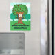 Branch Out With Love and Hug A Tree magnet, featuring a nature inspired scene of a funny happy tree with big goofy eyes and a wide friendly grin. The tree trunk is brown and the leaves are green dotted with red heart shaped apples. Below are two text templates in a chunky fun green font with a black stroke. One reading "Branch Out With Love" and the other reading " Hug A Tree" These can be used as they are or you can use the text templates to add your own text. The background is a simple nature scene with trees, grass and clouds. Ideal for tree lovers, nature lovers and a love for the environment.