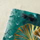 Branch with jewellery, gold and green leaves of Ginko biloba on light, painted green background. Ginko biloba